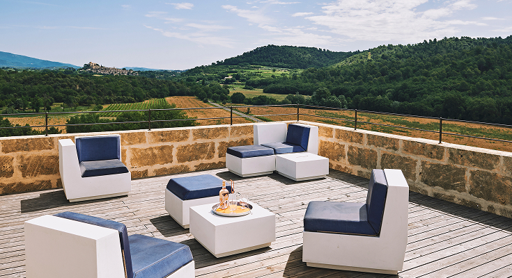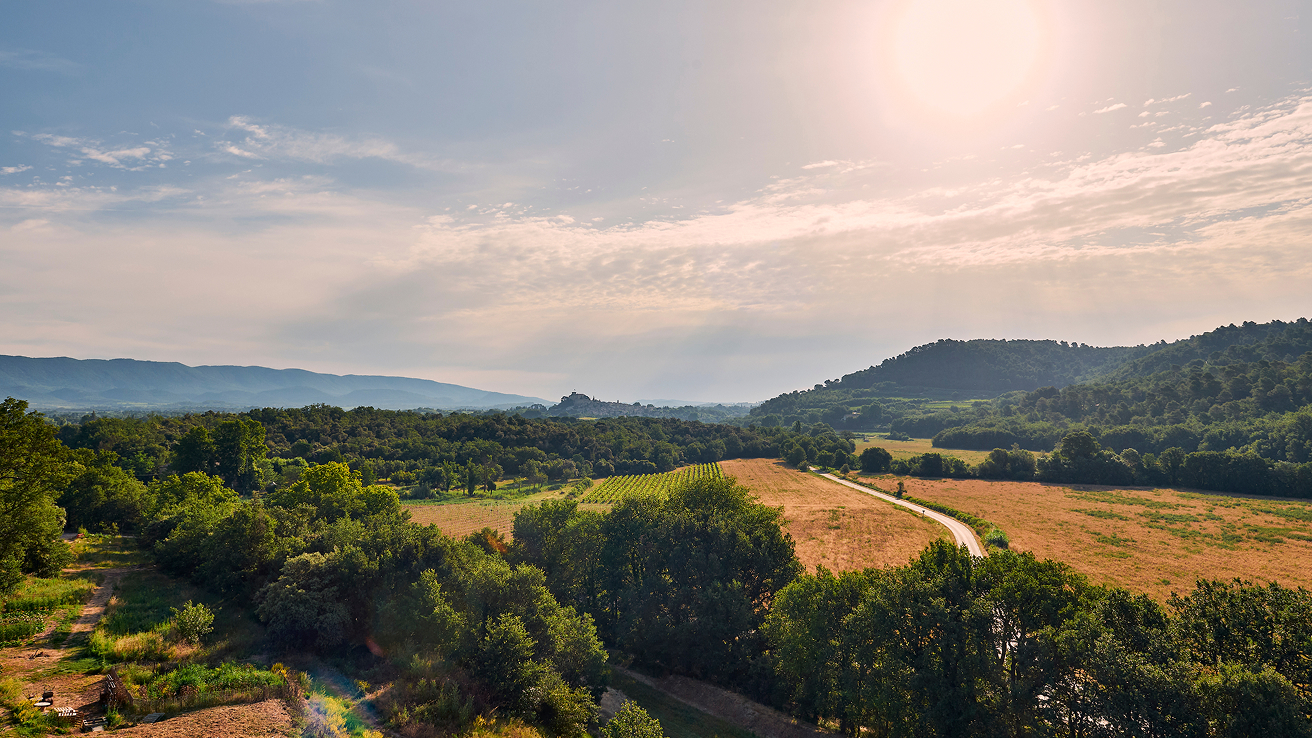 Au Sud du Luberon, entre Aix et Cucuron, à hauteur du village accroché d'Ansouis et sur la colline dominant le village de Villelaure, c'est un pays fertile, viticole, oléicole et agricole qui se déploie.